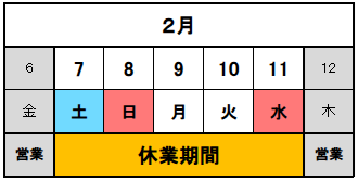 2月休業期間のお知らせ